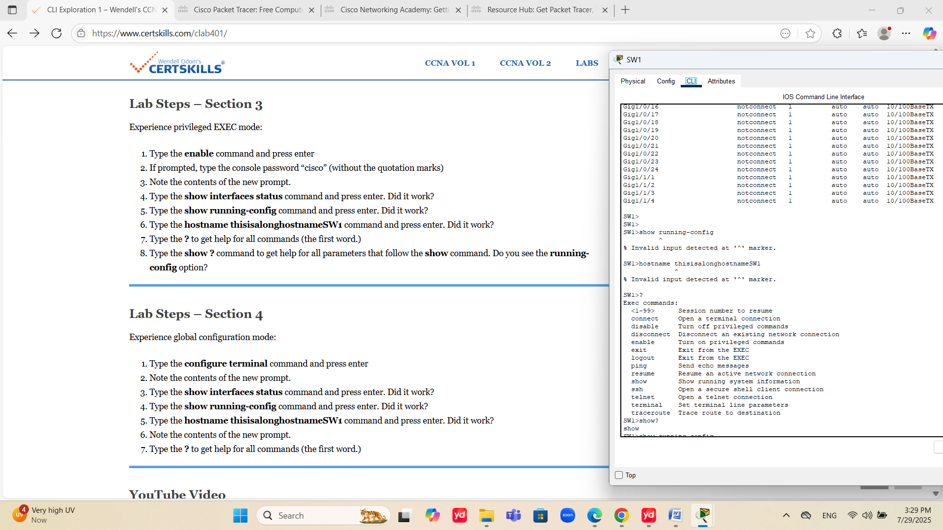 - Type the hostname thisisalonghostnameSW1ย command and press enter. Did it work?
